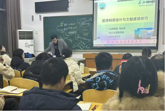 12月13日晚,医学部求实导师学术沙龙系列讲座之“医学科研设计与文献速读技巧”在东校区1教202教室举办。本次沙龙由马兆武副教授主讲,2025级临床医学、基础医学专业研究生参加了本次交流。