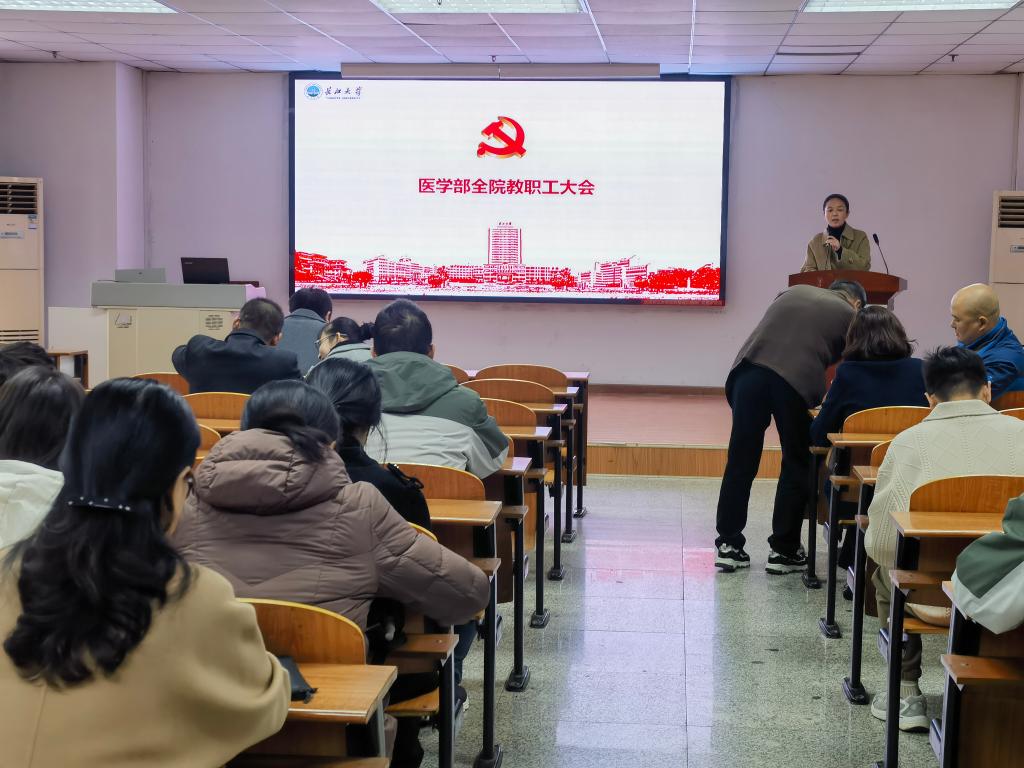 11月16日下午,医学部于14教南410会议室召开2023年11月全院教职工大会暨教职工政治理论学习会议。会议由医学部党委书记黄群俊主持,全体教职工参与此次会议。