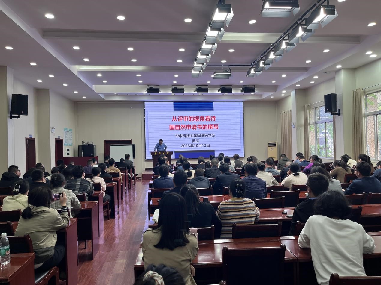 大会旨在鼓励医学部全体教师、临床医师积极申报国家自然科学基金项目,提升医学研究的整体水平。会议特别邀请了华中科技大学同济医学院医学学科与发展规划办主任黄昆教授以《从评审视角看待基金申请书的撰写》为题为全体申报人做专题辅导。