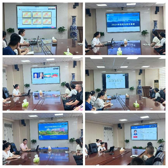活动伊始,医学部部长助理刘莲副教授做了热情洋溢的欢迎致辞;随后,研究生办公室班静老师围绕长江大学和医学部概况、科研平台、招生专业、导师配备、奖励政策等方面向营员们做了详细介绍,并强调了医学部的特色及优势;附属第一医院研究生教学办王璐老师,附属荆州医院研究生教学办龚道庆老师分别向营员们介绍了两家附属医院基本情况、招生学科、住培政策及导师队伍等情况,为营员们结合自身实际情况填报专业和选择导师提供了指导。接着,医学部硕士生导师汪献旺教授、刘莲副教授、钱锋副教授、刘本菊博士和习珊珊老师分别就自己的研究课题和科研心得与营员们做分享,勉励同学们通过考研、读研来提升自己,并鼓励同学们踊跃报考长江大学医学部2024年硕士研究生。