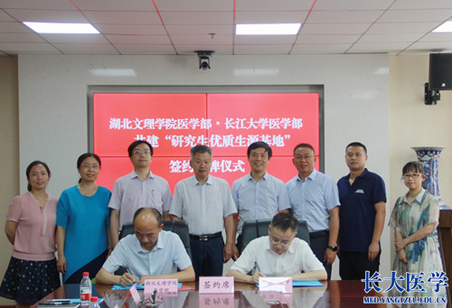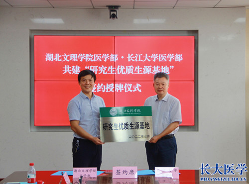6月27日上午,在14教502会议室,湖北文理学院与长江大学医学部签署了共建湖北文理学院“研究生优质生源基地”协议,并举行了授牌仪式。湖北文理学院校党委常委医学部部长毛春、副部长基础医学院党委书记孙维权、基础医学院党委副书记李健强出席会议,长江大学医学部领导参加会议。
