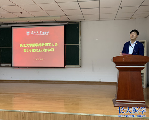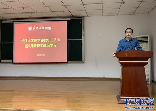 5月19日下午,在14教410会议室召开教职工大会暨5月教职工政治学习会议,医学部全体教职工参加会议,会议由党委书记关辉主持。