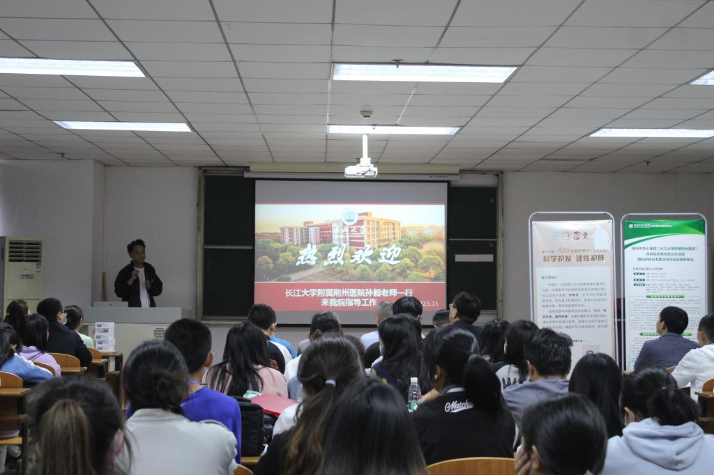 (通讯员:胡晓倩 王乾)为普及学生皮肤与运动康复知识,培养良好的卫生、运动习惯,预防和减少此类疾病的发生,医学部于5月15日在14教南410学术报告厅开展医学健康知识系列讲座,特邀荆州市中心医院(长江大学附属荆州医院)曾同祥、柳兵、孙毅、陈克军等11名专家主讲,医学部党委副书记张文君莅临指导,医学部精诚班学员、入党积极分子以及五大球队队员参加。