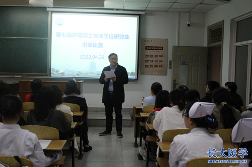 比赛开始前,医学部党委副书记张文君老师发表讲话,他强调了护理硕士研究生举办讲课比赛的重要性和必要性,希望大家把握每一次学习、锻炼的机会,不断努力,越来越好。接着,护理系主任龚爱萍老师介绍了比赛的组织情况、比赛流程等。