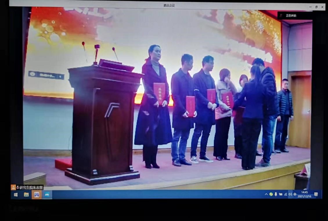 会议首先为受表彰的导师团队和个人颁发了荣誉证书。医学部周红教授、附属第一医院副主任医师徐澄老师、附属荆州医院主任医师杨克平老师被评为“2021年长江大学优秀研究生指导教师”。