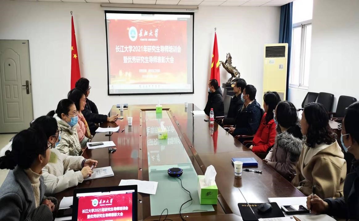 12月16日下午,长江大学研究生院在东校区11教学术报告厅召开长江大学2021年研究生导师培训会暨优秀研究生导师表彰大会。副校长周思柱,受表彰导师代表、研究生院相关负责人参加现场会议,医学部在14教南615会议室设立分会场,分管研究生工作负责人刘莲博士及全体研究生导师同步视频参会。