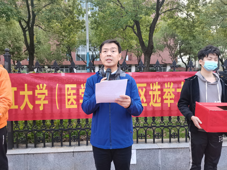 (通讯员:岳柏宇 张渊 摄影:李浩源 牛俊格)2021年10月26日上午8点30分,长江大学医学部选区在长江大学大西门风雨篮球场召开了荆州区第七届人大代表选举大会,符合选民投票的医学部及第一临床医学院师生参加,医学部党委书记关辉主持大会。