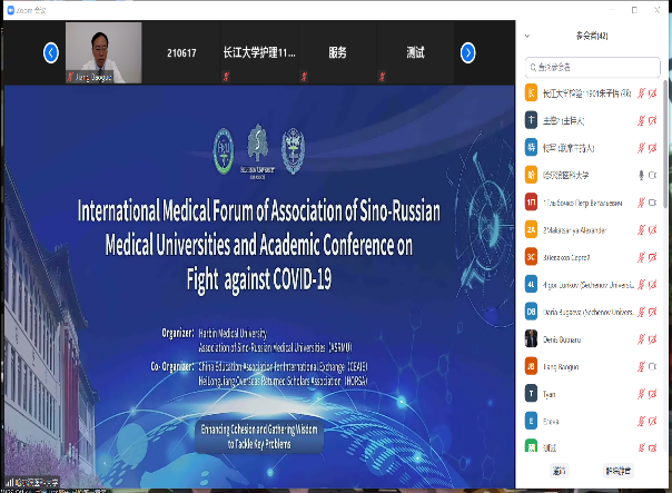 (通讯员:尹恒 顾觉醒 孟鑫)2021年6月17日星期四下午,中俄医科大学联盟国际医学论坛暨抗新冠肺炎学术会议如期在线上召开,医学部组织各级学生在14教南410进行观看。