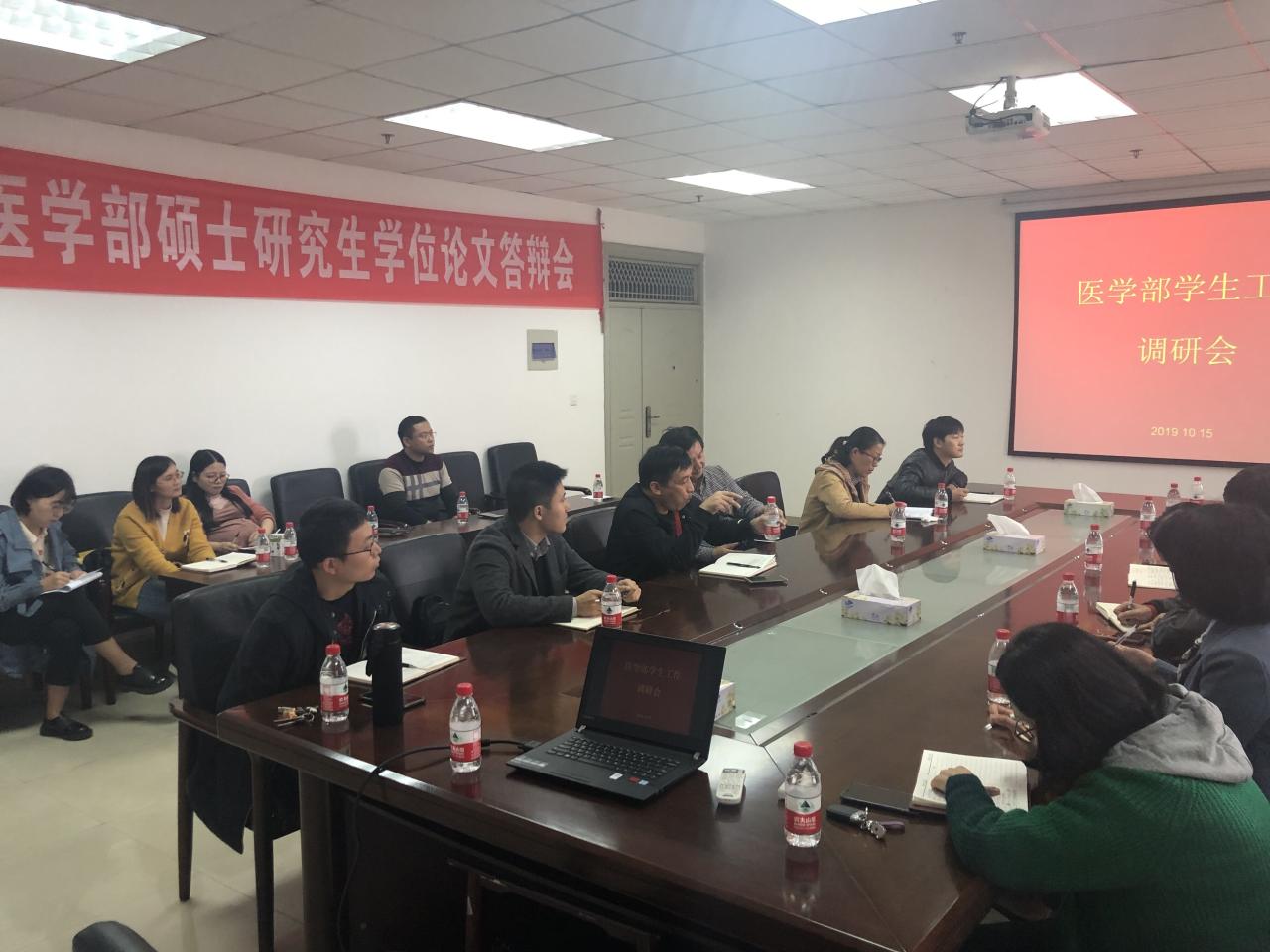 (通讯员:王乾 赵恒园)2019年10月15日14:30,医学部学生工作调研会在14教南615召开。医学部党委书记关辉、各班班主任以及各年级辅导员参加了本次会议,会议由学生事务处办公室主任张昊主持。