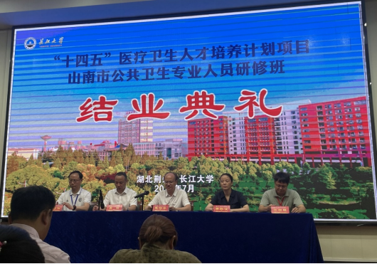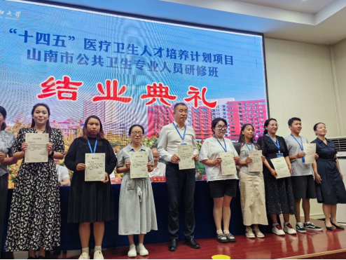(通讯员 习志江 罗曼 鄢进)7月18日上午,由我校举办的山南市公共卫生专业人员研修班在东校区就业宣讲大厅圆满结业,来自山南的32名学员以及科技援藏医卫项目专班人员参加了结业典礼。结业典礼由医学部常务副部长龚权主持,他表示“本期研修活动内容丰富,形式多样,在学校、医院各级领导的大力支持下,在专班人员的共同努力下,在各位学员的优异表现下,顺利完成了所有研修课程。”