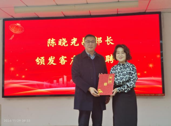 (通讯员 齐小伟)11月29日上午,新加坡国立大学终身教授、美国护理科学院院士王文茹教授来我校讲学。长江大学医学部常务副部长陈晓光教授代表医学部全体师生对王教授的到来表示热烈欢迎,并向王文茹教授颁发了医学部客座教授聘书。陈晓光部长强调,通过本次学术交流活动,护理系老师和学生要不断拓宽国际视野,努力提升我校护理教育和护理科研水平。