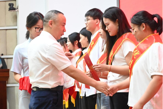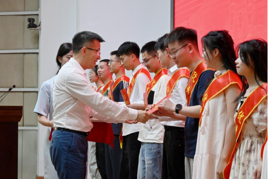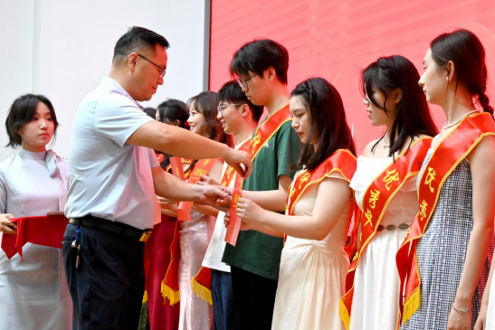 典礼在庄严的国歌声中拉开帷幕。黄群俊书记宣读表彰文件,对优秀毕业生表示祝贺并颁发荣誉证书。