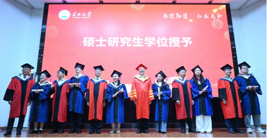 随后举行医学部2025届毕业生学位授予仪式。毛精华教授,龚权教授,梅京松教授,孙亚凌教授,谭小平教授、陈晓光教授等为毕业生们正冠拨穗、颁发学位证书。