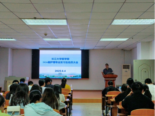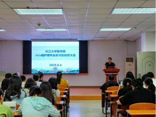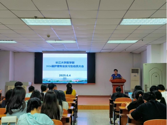 (通讯员 杨紫涵)为明确实习目标与安排,强化职业素养与安全意识,鼓舞士气,助力同学们以积极、安全的状态投入实习,6月4日晚,医学部在14教南410室召开2026届护理学专业实习生动员大会。医学部党委委员,工会主席王超出席会议,学生事务办主任黄柏青、教学办实习管理负责人程松、2026届全体护理学专业学生参加了会议。会议由护理系主任龚爱萍主持。