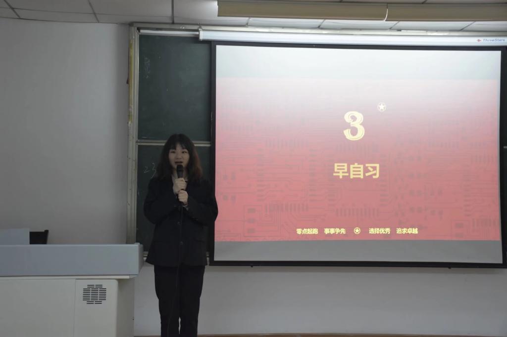 活动伊始,通过播放宣讲视频,同学们了解“三早”行动。随后,主讲人滕文姝介绍了青马培养体系和青马班成就,分享了自己在青马班的成长过程,鼓励同学们坚持早起;主讲人程子纯详细讲解青马班丰富而精彩的日常活动和课程,以及从体魄、能力、思想三方面来宣讲早锻炼;主讲人何珊珊弘扬青马精神,诉说自己对青马班集体的热爱,并且提到要坚持上早自习。紧接着,在自由提问过程中,三位主讲人针对同学们提出得问提作出详细的回答。活动最后,张文君副书记向同学们讲述自己多年坚持早上六点半在长江边游泳经历,提倡同学们早起床、早锻炼、早自习。辅导员王乾老师督促同学们好好学习,积极备考四六级。