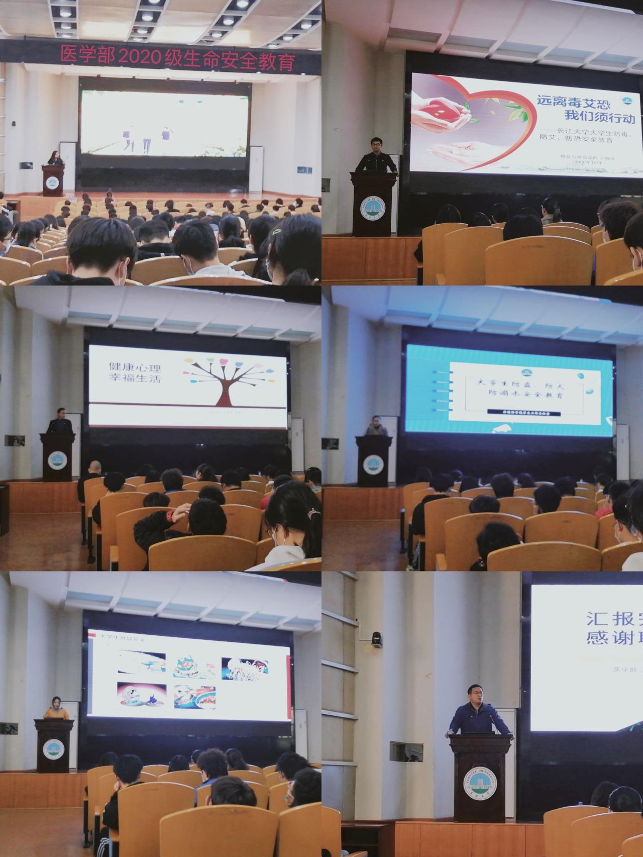 (通讯员:严彤 王喆)为切实增强新生的安全防范意识和避险能力,帮助新生认识生命、珍爱生命、保障安全,医学部于11月下旬在12教405开展生命安全教育系列讲座。系列讲座由医学部王喆老师主持,特邀教体学院文晓武老师、艺术学院陈盈盈老师、马克思主义学院李敏老师、外国语学院刘庸老师主讲,医学部党委副书记张文君莅临指导,全体2020级辅导员、班主任及新生参与。