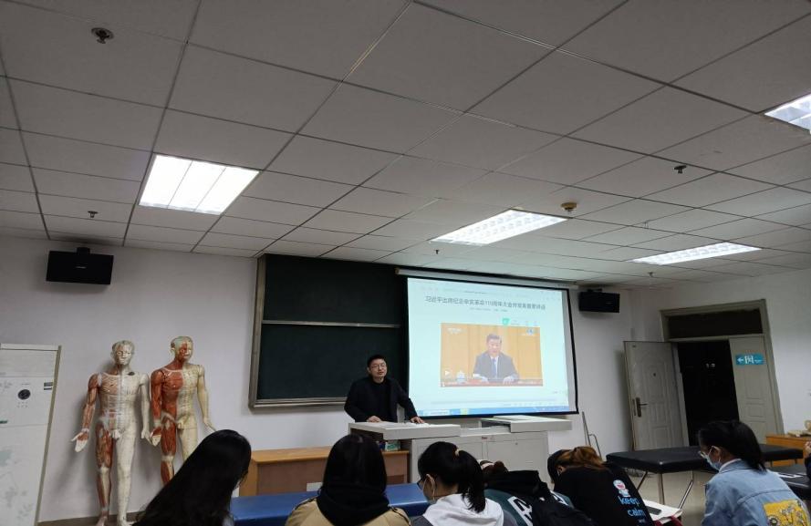 临床11902班、中西临床11801和临床12001班等班级现场集中开展学习,同学们结合所学专业和身边事例积极发言。临床11902班在班主任、医学部党委书记关辉老师的指导下,以“牢记使命跟党走,凝心凝力谱新篇”为主题,开展了认真学习和热烈讨论。针对同学们发表的学习感想,关辉书记勉励大家笃志勤学、为振兴中华而努力;中西医临床11801班班主任潘丰满老师则全面细致地介绍了辛亥革命的相关历史,通过对学习内容的针对性引导,让同学们更加明确辛亥革命的现实意义和当代青年的使命担当。