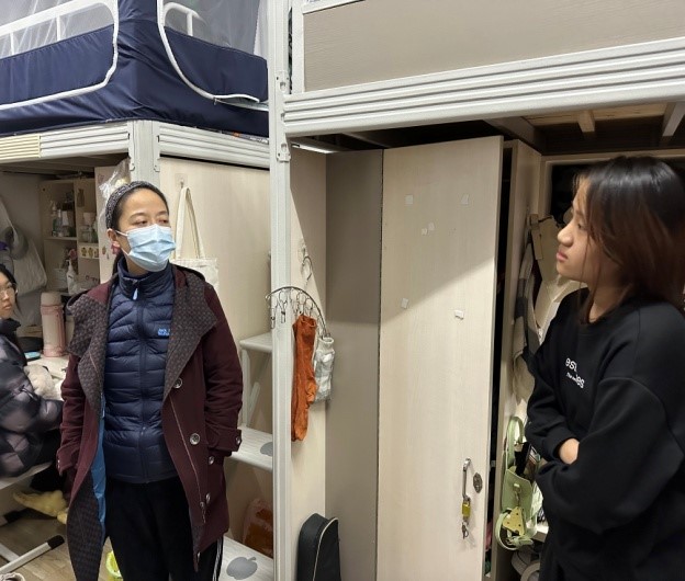 为了提高同学们的安全意识,排查寝室安全隐患,了解同学们的宿舍生活状态,促进对学生的日常管理,为大家创建一个良好的学习生活休息的环境。12月17日和12月21日下午,医学部党委书记黄群俊、党委副书记张渊带领全体辅导员对医学部学生宿舍进行全面安全文明卫生大检查,医学部各班班主任也利用周末晚点名等时间段对各自班级的学生宿舍进行了走访检查。本次检查重点是宿舍安全、文明礼仪、寝室卫生、楼道消防、违规电器、甩线飞线、设备缺损等情况。