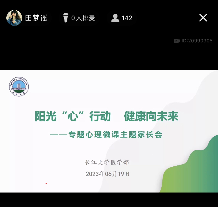 6月1日至10日,各年级辅导员集中召开了线上家长会,与学生家长一同学习湖北高校心理健康专家服务队打造的专题心理微课等内容,交流探讨学生中的常见心理问题,共同加强对于学生的心理健康教育,营造良好了家校共建的心理健康教育氛围。