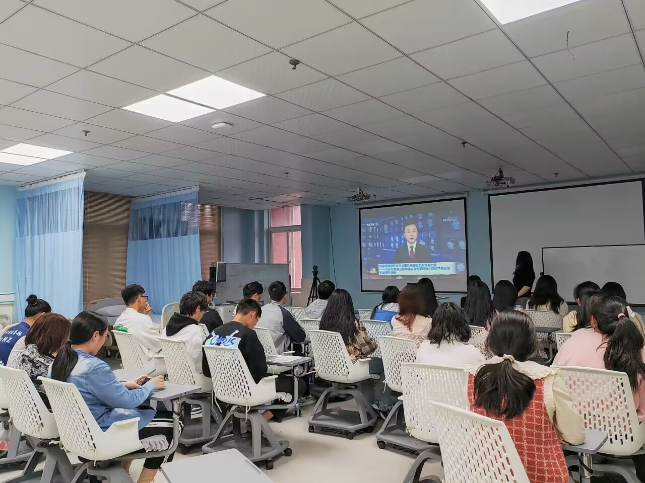 临床12201班和临床12207班在学习小组成员曾芝琳老师领学下,共同学习回信原文,观看《为全面建设社会主义现代化国家贡献青春力量——习近平总书记给中国农业大学科技小院的学生回信引起强烈反响》视频,进一步领会回信精神。白婧琪、乐钦等同学联系学习实际畅谈体会,同学们表示要扎实学好专业知识,积极参加志愿活动,用自己所学知识为基层卫生事业发展尽一份力。
