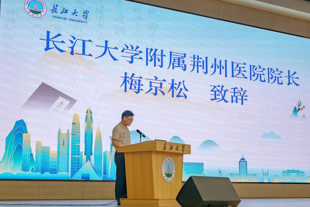 活动伊始,荆州市中心医院院长梅京松和长江大学副校长毛精华分别致辞。梅院长表示,党建共建对临床研究转化与医疗服务意义重大,呼吁师生关注健康、树立科学理念。毛校长强调,师生健康是高校高质量发展的基础,医学部将持续搭建“医院-学校”党建合作平台,定期开展活动,筑牢校园健康防线,共谱医校合作新篇。