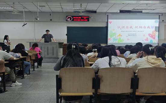 培训中,郭老师围绕"认识自我,接纳自我"主题展开讲解。结合具体案例,深入分析了自我认识偏差的常见问题,并针对性提出解决方案,指导同学们通过认知调节和行为调节实现自我完善与关怀。