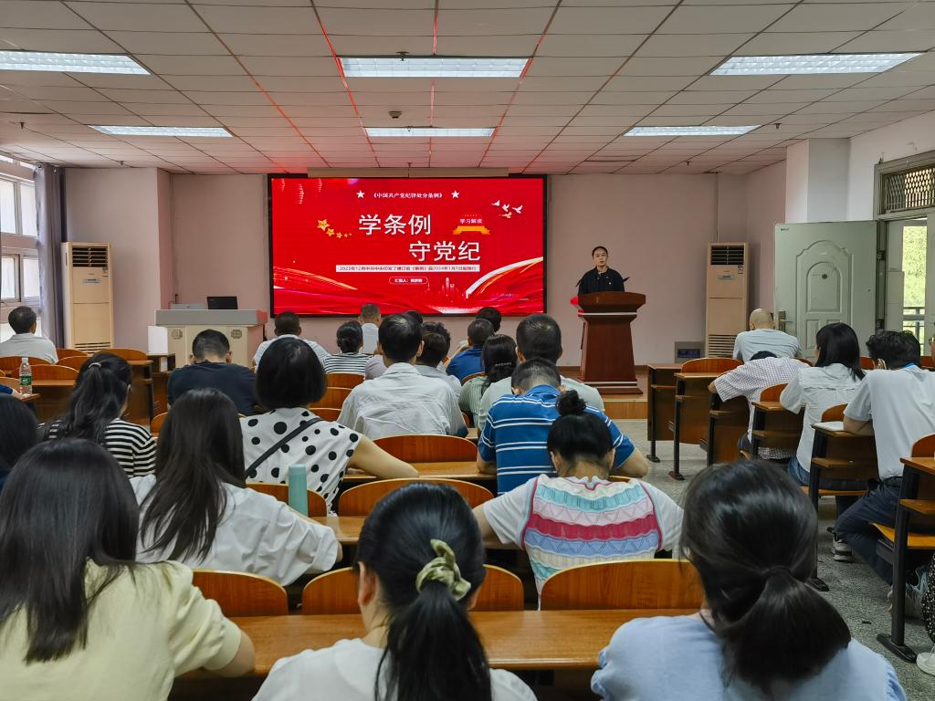 医学部党委书记黄群俊带领全体教职工开展了5月政治理论学习,并以《学条例 守党纪》为题讲授了一堂党纪学习专题党课。黄群俊书记强调,开展党纪教育学习,是维护党的团结统一、确保全党令行禁止的必然要求,是解决对党规党纪不上心不了解不掌握问题、深入推进全面从严治党的重要举措。广大党员教师要在今后的工作中擦亮党员身份,坚定理想信念,自觉做到知纪明纪守纪,静下心来,紧盯目标,融入集体,成就自我,知行合一,主动作为,为推动学部的高质量发展贡献更大的力量。
