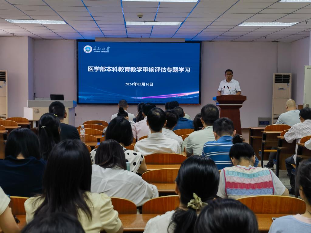 会上,健康医学院院长兼医学部副部长陈晓光带领全体教职工一起开展了本科教育教学审核评估专题学习。并以《铸魂育人,立德树人》为题,讲授一堂深入的思政课。
