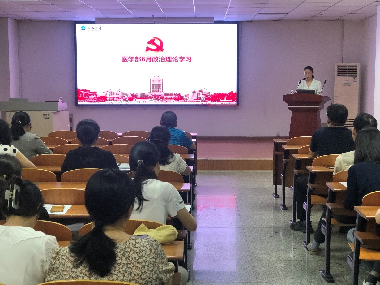 最后,医学部党委书记黄群俊带领全体教职工开展了6月政治理论学习。