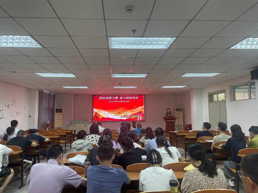 会上,首先开展了医心向党管理能力素养培训第四期专题讲座。本次邀请到的嘉宾是中共荆州市委宣讲团成员、长江大学马克思主义学院教授贾廷秀。贾教授以《团结凝聚力量 奋斗铸就伟业》为题进行宣讲,带领全体教职工深入学习领会全国两会精神,推动大会精神深入人心,并转化为干事创业、团结奋进的强大力量。