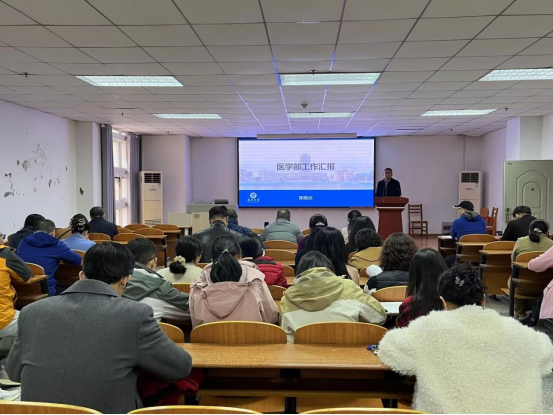 常务副部长兼基础医学院、健康医学院院长陈晓光作医学部工作汇报,传达部务会会议精神。