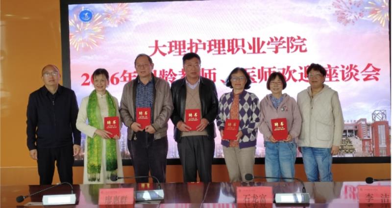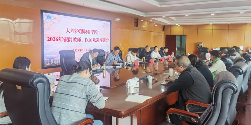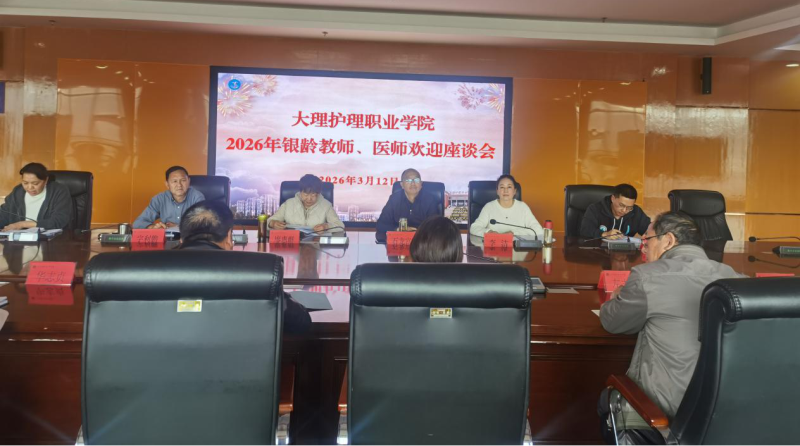 3月12日,大理护理职业学院召开2026年春季学期银龄教师和医师欢迎座谈会,总结银龄人才工作成效,听取宝贵意见建议,推动师资队伍建设与教育教学质量提升。本学期学校引进银龄教师3名,银龄医师2名。其中医学博士、硕士研究生导师1人,正高级职称占比60% ,专业涵盖基础医学、临床医学、中医学、五官科学、护理学等领域。